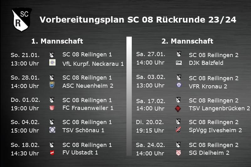 Kommende Woche starten unsere beiden Herrenmannschaften mit ihrer Vorbereitung auf die am 03. März offiziell beginnende Rückrunde, um sich die notwendigen Grundlagen in Sachen Fitness und Taktik zu erarbeiten.
