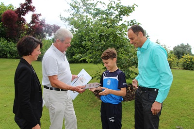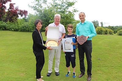 Der Vereinsvorstand des SC Reilingen, Uli Kief, kam daher am 16. Juni 2015 mit Sohn und Fußballer Ole in den Golf Club, um sich bei StifterDietmar Hopp für die Spende zu bedanken. Beide überreichtenDietmar Hopp eine Urkunde und eine Plakette zur Ehrenmitgliedschaft im Verein. Ferner hatten Sie dem Stifter eine süße Überraschung mitgebracht: einen lecker duftenden Reilinger Käsekuchen.
