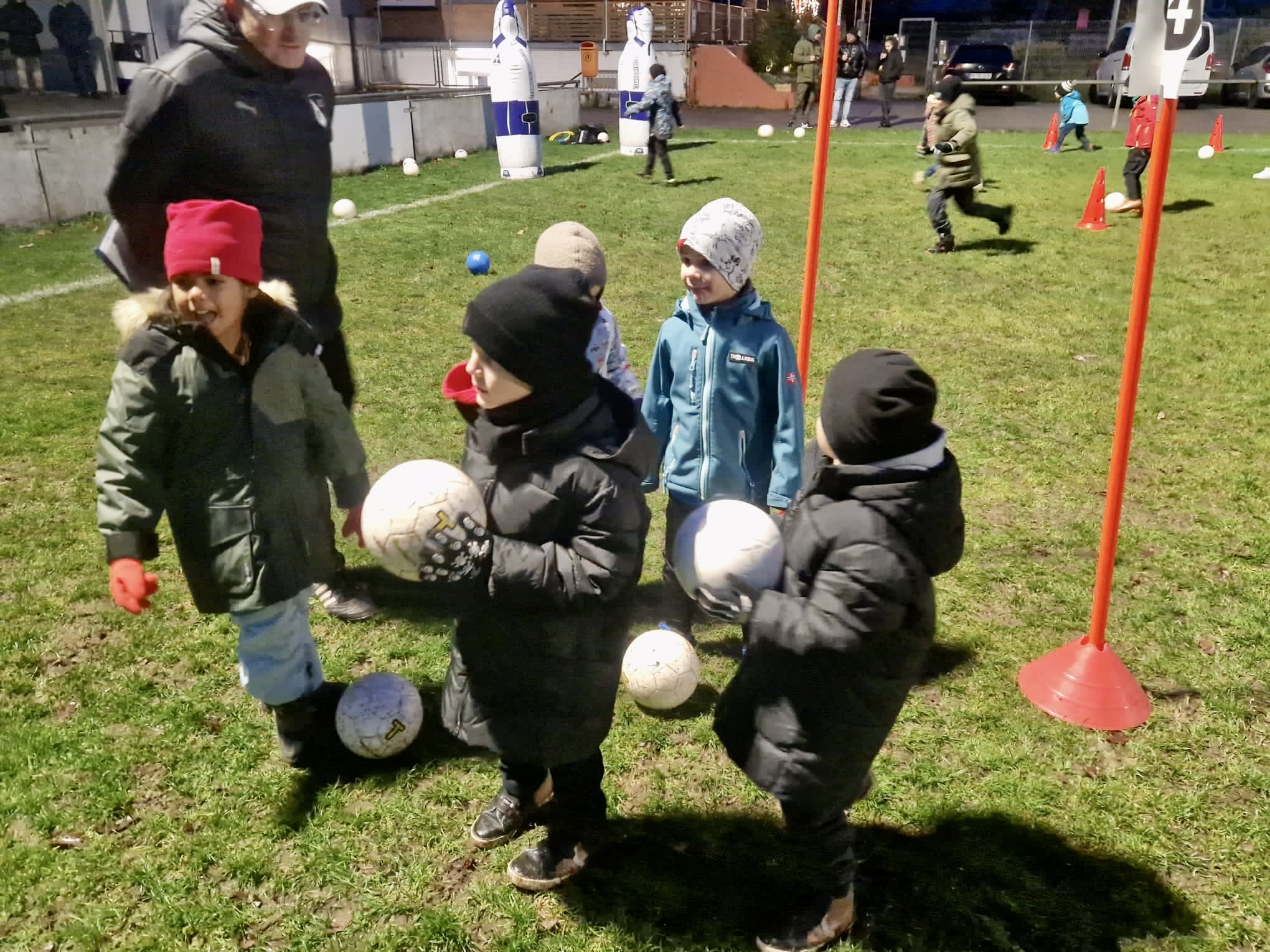 Während der kurzweiligen Trainingsstunde konnten sich die Kids beim Schneemannschiessen, Schneeballwerfen, Schneeballrollen, Schneeballtransport und dem Dribbelparcour „Das ist das Haus vom Nikolaus“ so richtig austoben.