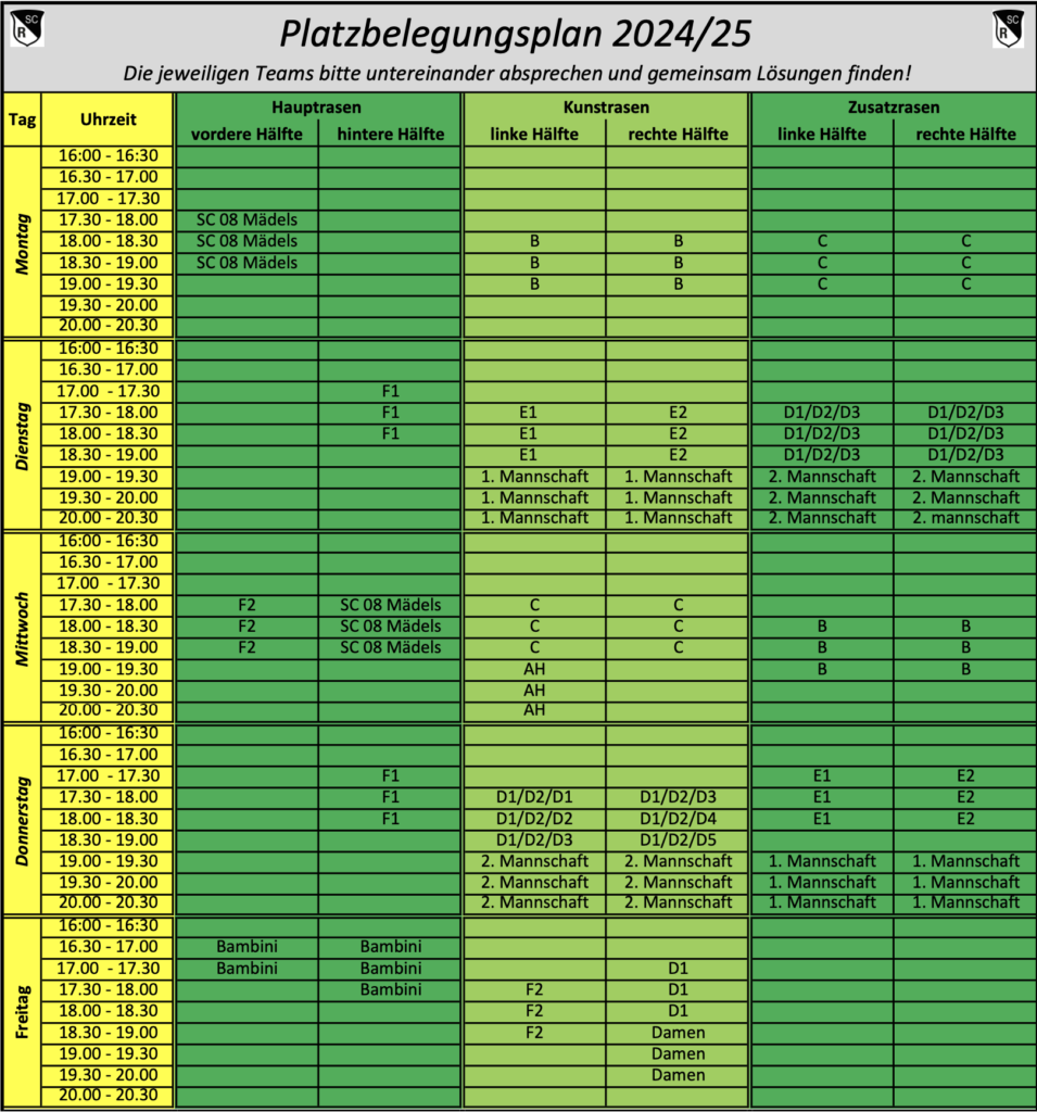 Trainingszeiten